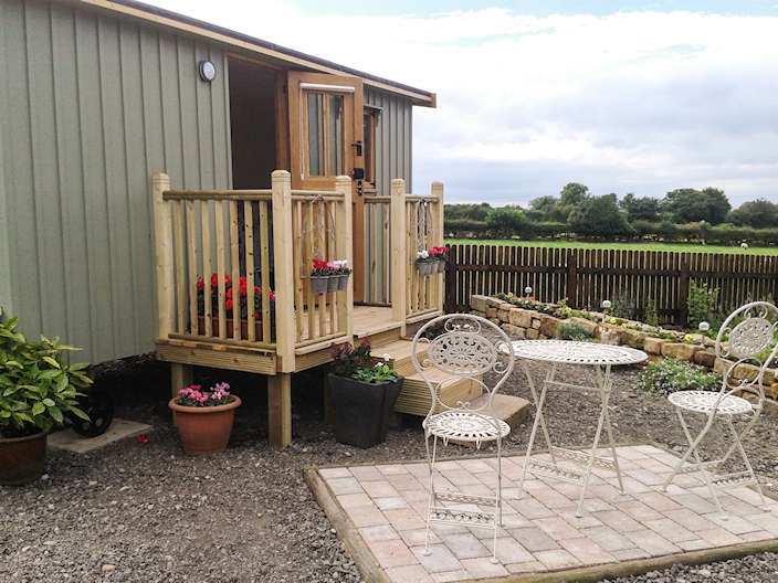 New for 2016 - The Shepherds Hut The delux Shepherds hut is set in our cut flower garden over looking a quiet garden and open country side with Roseberry Topping in the distance. The delux Shepherds hut has a large double bed, tea and coffee making facilities with an en suite bathroom . |